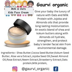 Give your little one the gift of nature with our Milk & Oats Kids Face Cream. Crafted by Gaurvi Organic, this cream features the goodness of Oats and Milk Protein combined with Jojoba and Almond oils, providing long-lasting moisturization. An exotic blend of Shea and Kokum Butters, along with Almond oil, hydrates, strengthens, and protects your baby’s tender facial skin from environmental damage.